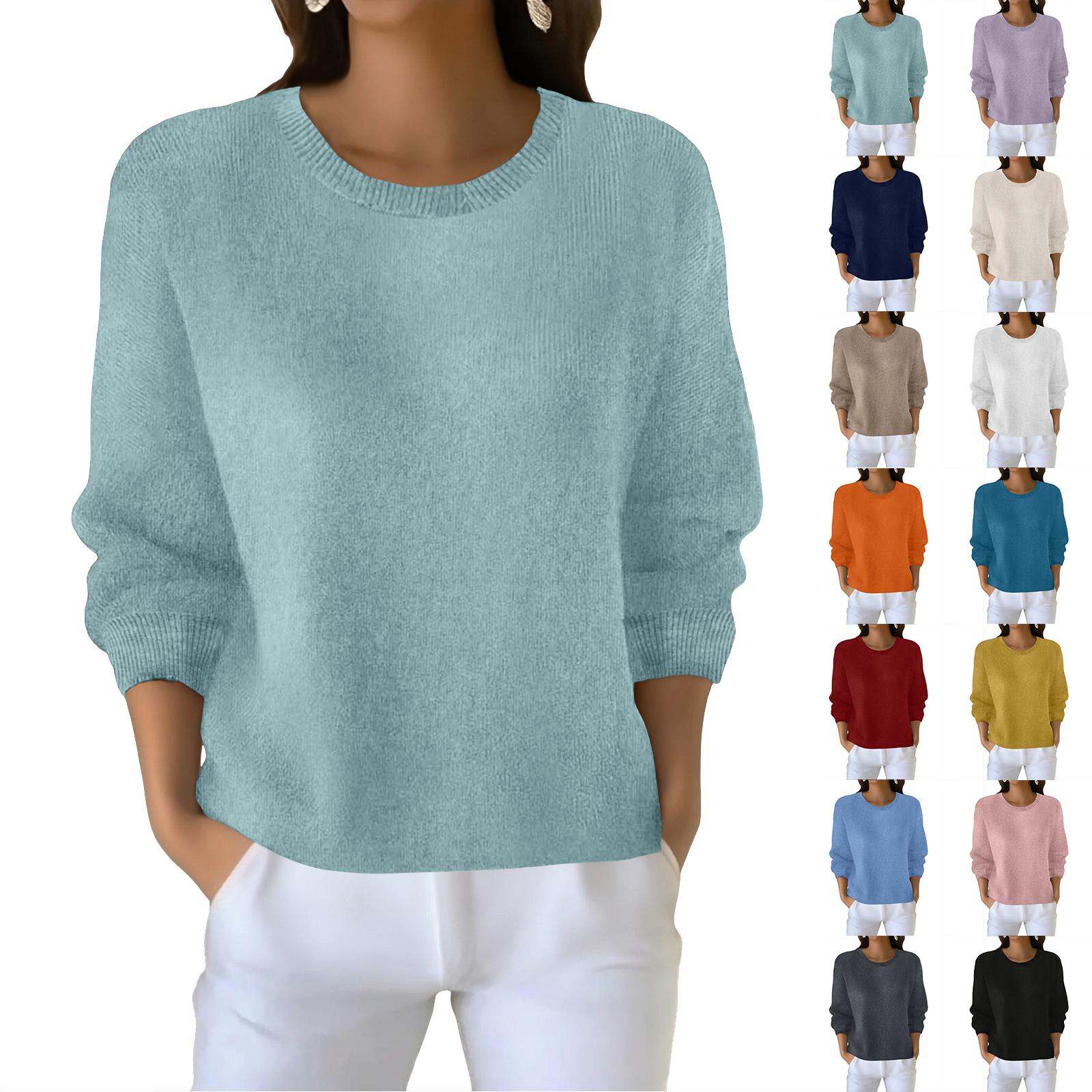 Women's Fashionable Casual Knitted Top Loose-Fit Solid-Colour Long-Sleeved Jumper cm blue