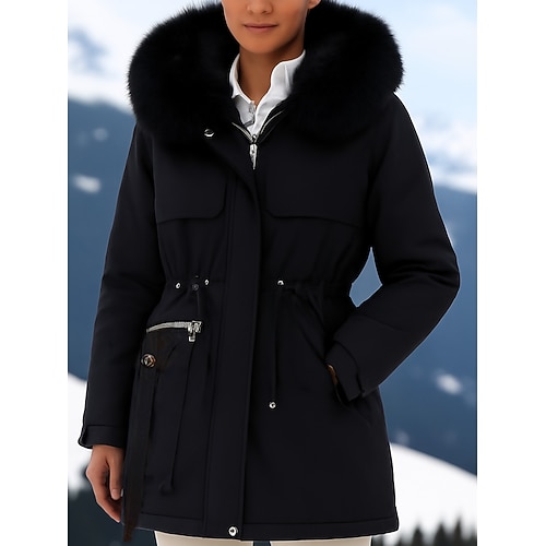 Per donna Cappotto Invernale Impermeabile Antivento Tasca Collo in Pelliccia Quotidiano Casuale Regolare Con Cappuccio Vestibilità regolare Manica Lunga Capispalla Nero Marrone Cachi Autunno Inverno