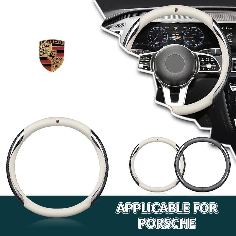 Leather Carbon Fiber Car Steering Wheel Cover Car Accessories For Porsche Cayenne Panamera Macan Boxster 911 928 944 918 917