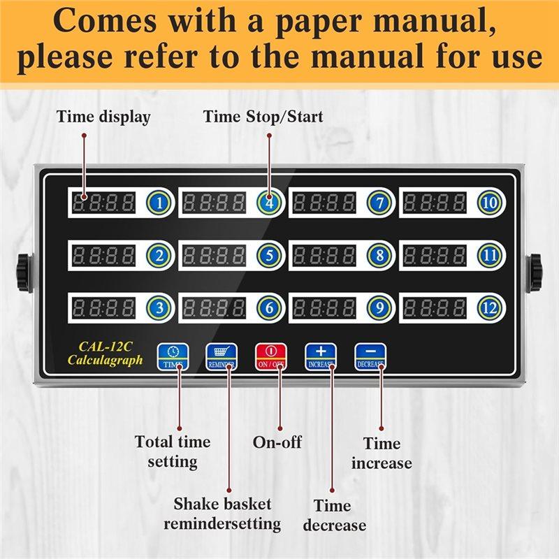 ABKY-Large LCD Display, 12-Channel Digital Kitchen Timer With Loud Alarm, For Restaurants, Commercial Cooking Timer