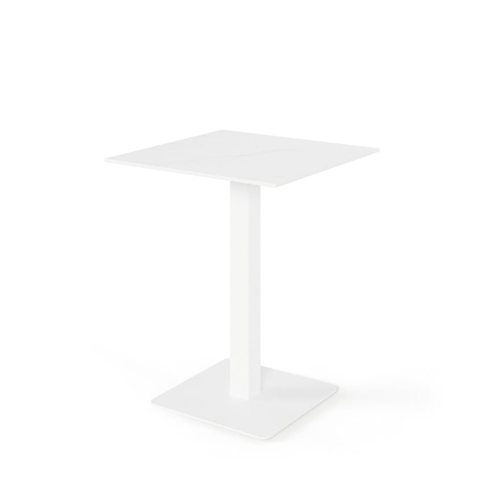 Tavolo alto quadrato con piano bianco e gamba bianca