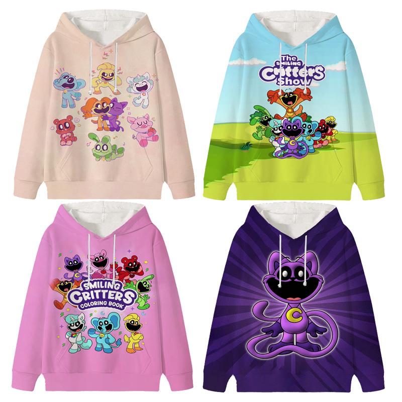 Genser med hette med smilende dyr for barn Catnap Dogday Gutter Jenter Tegneserie Anime Sweatshirts Topper Barn Fritidsgensere Yttertøy Sudadera cm br