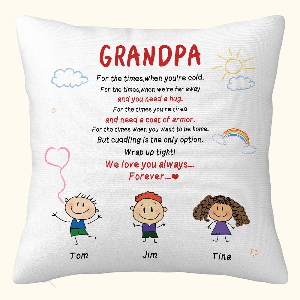 Personalizado We Love You Always Forever Stick Figures Cute Kid Sunshine White Clouds Throw Pillow Cover Regalo del Padre Decoración del Hogar