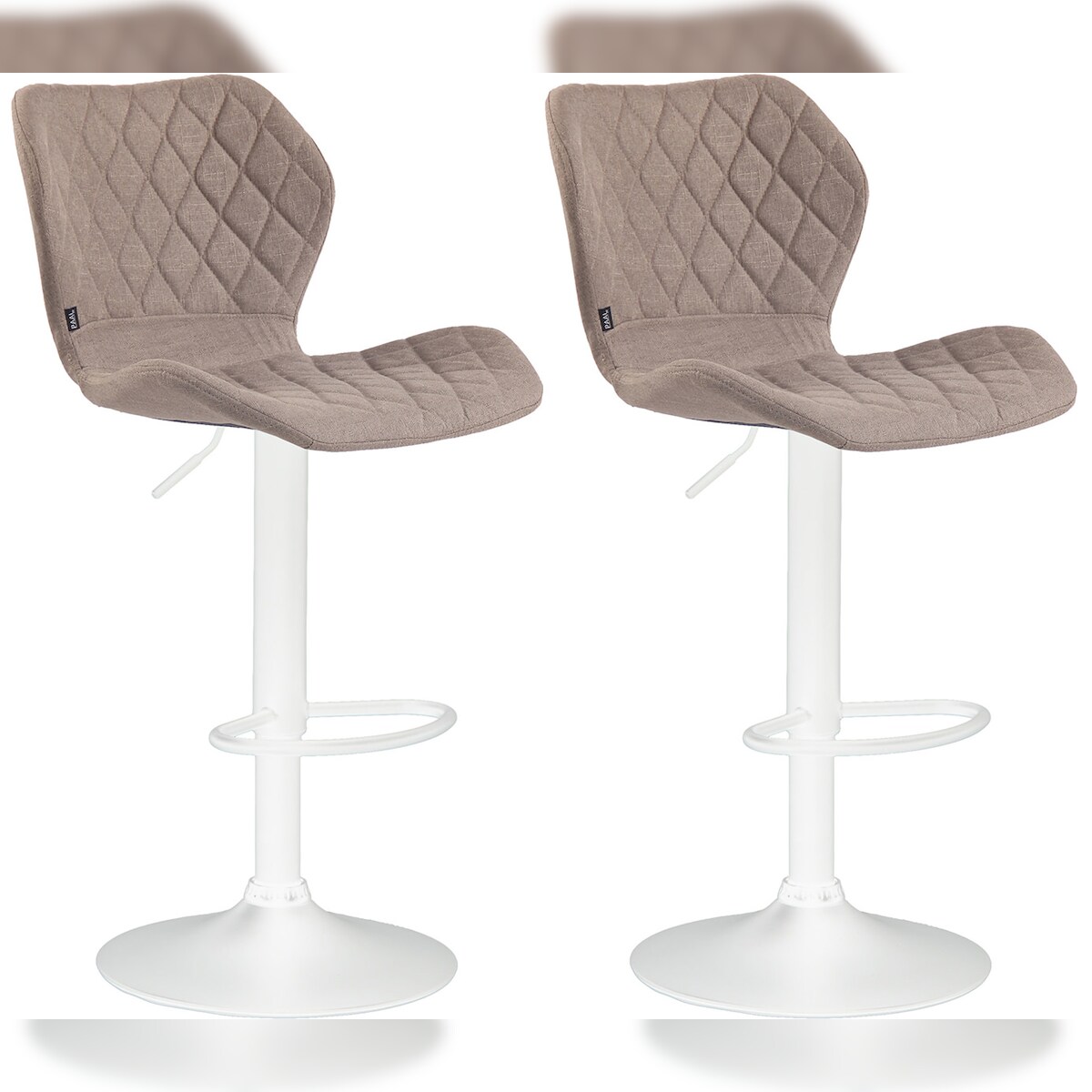 DELUKE 2er Set Barhocker DIBEL - Stoff Taupe 47x51x88 cm Weiß | Barstuhl Höhenverstellbar Mit Lehne Drehbar Tresenhocker Tresenstuhl Kneipenhocker