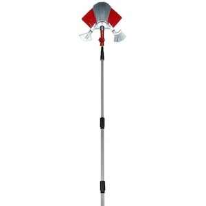 Fassadenbesen- Spinnenbesen - Dreieckbesen - Dachrinnenreiniger ausziehbar von 180 cm auf 480 cm inkl. Rinnenbürste und Laubschieber (abnehmbar)