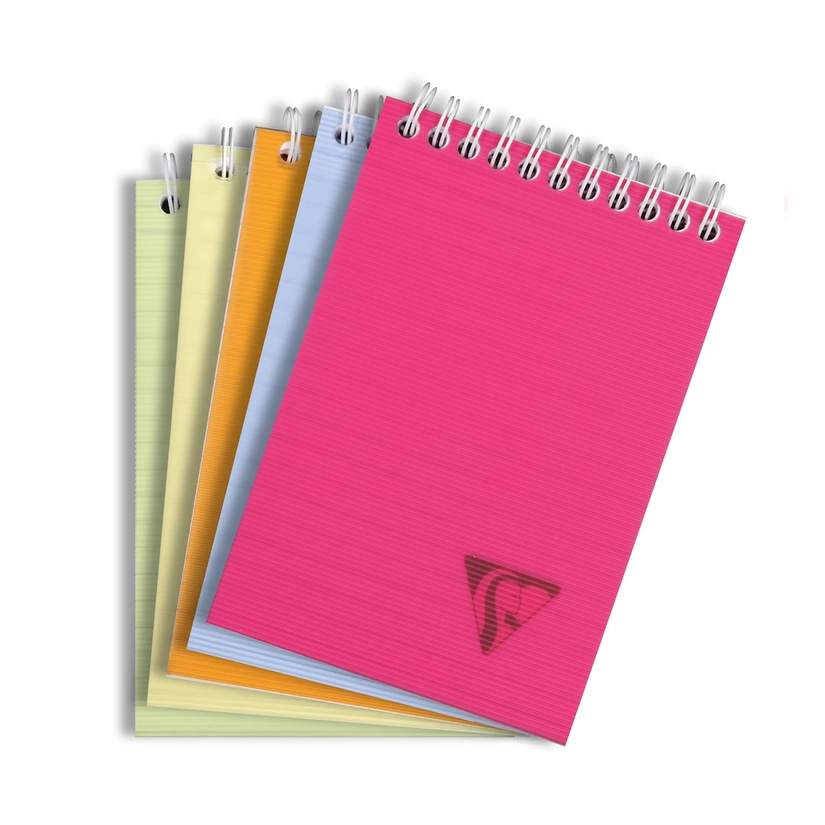 Clairefontaine 5x Linicolor FRESH, Block mit kopfseitiger Doppelspirale DIN A6, 80 Bl 90g kariert, Einband aus gerilltem PP - Sortiert 328655C