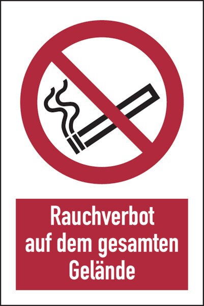 Verbotsschild, Kombischild, Rauchverbot auf dem gesamten Gelände, ISO 7010 - 200 x 300 x 2 mm Aluverbund