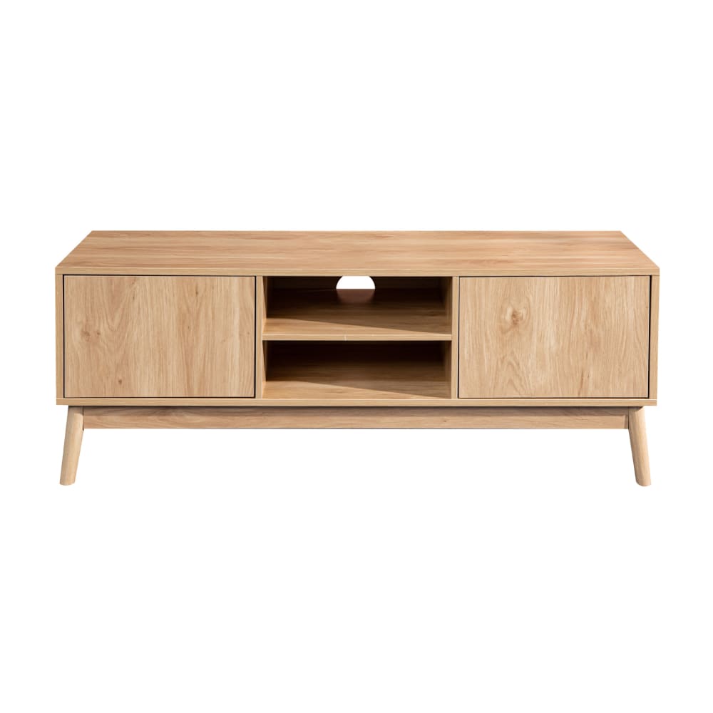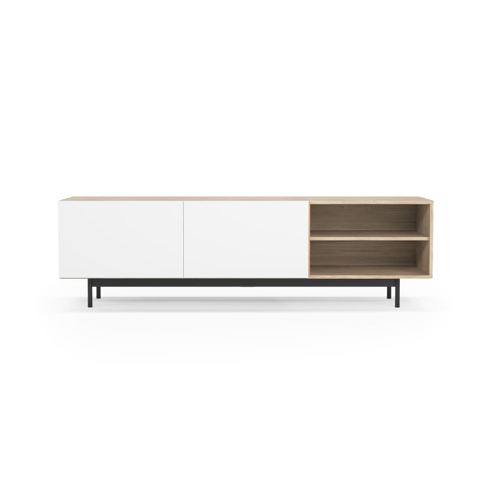 Mobile TV in melaminico rovere chiaro e bianco gambe grafite 52x180x44