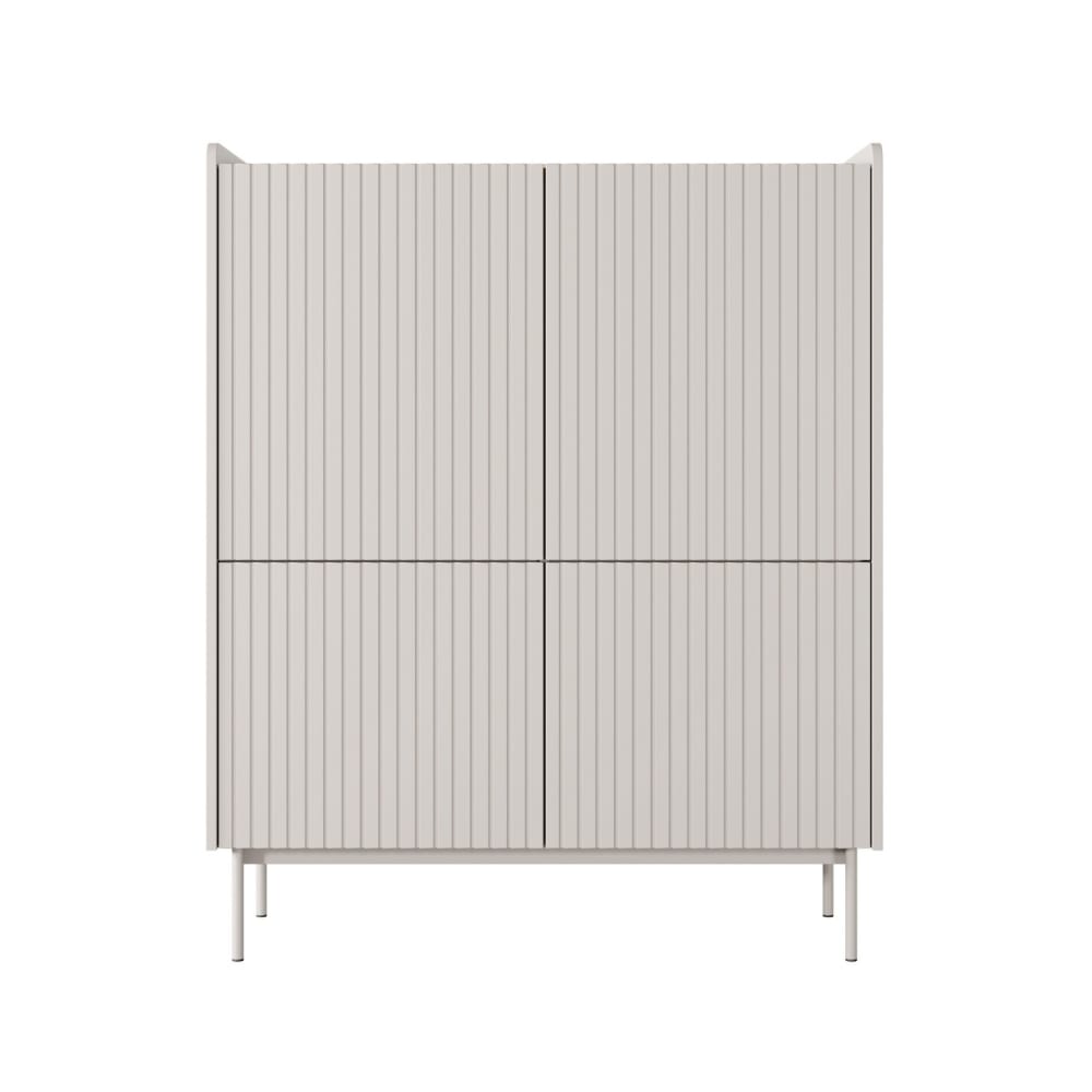 Mobile alto beige opaco con top rovere e gambe metallo, 126x100x38