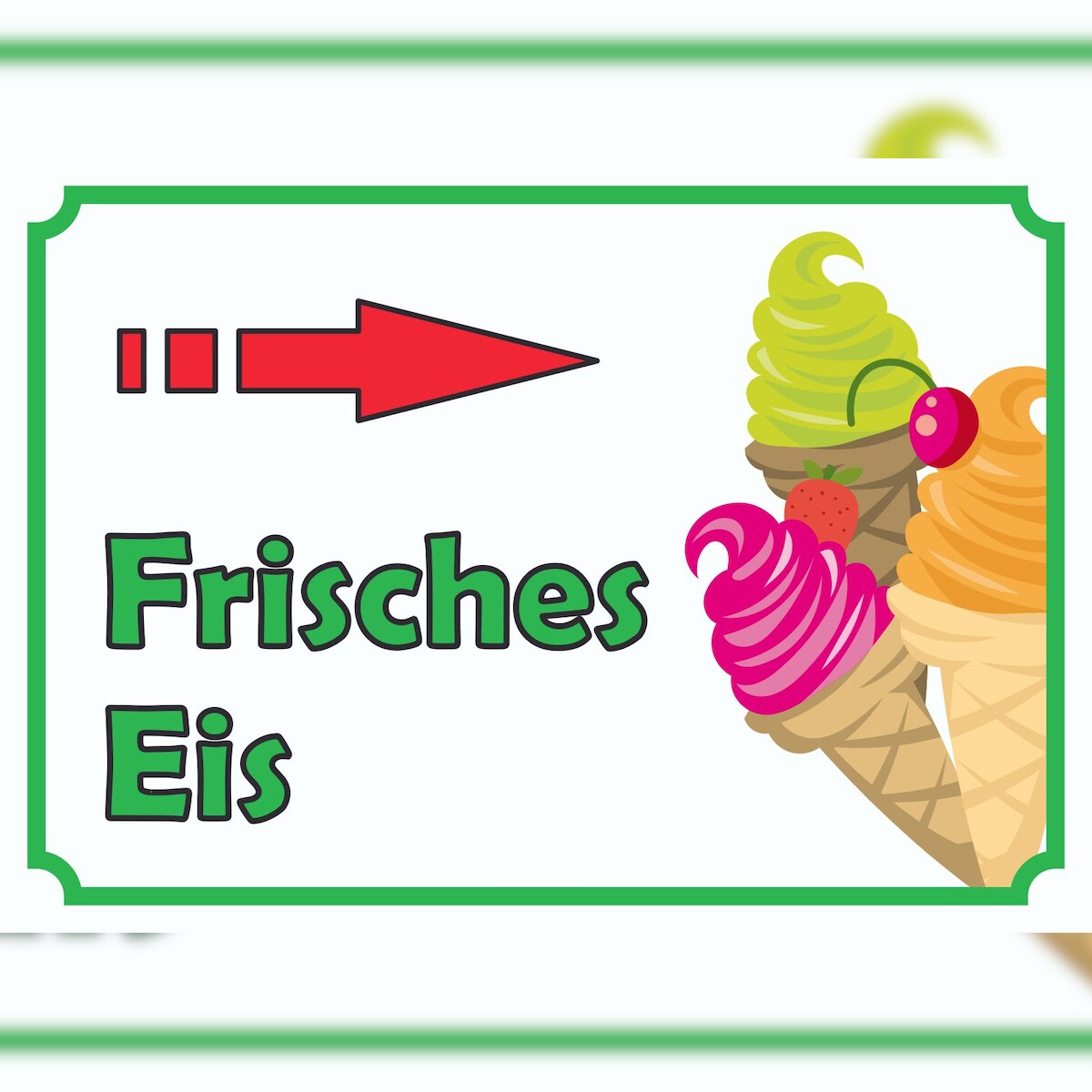 HB-Druck Frisches Eis Schild mit Pfeil rechts A6 (105x148mm)
