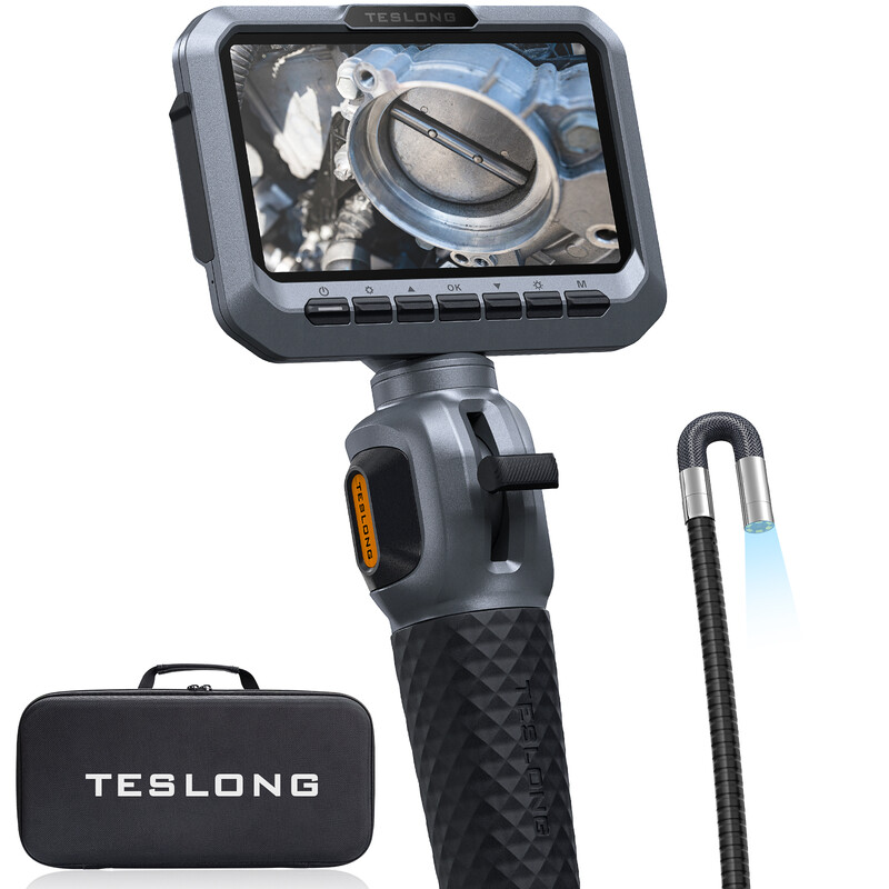 Teslong TD500 3.9mm Two-Way Articulating Inspection Camera with Light, 5-inch IPS Endoscope Inspection Camera with Articulated Probe, Borescope Cam with Lights, 3000mAh Battery, 32G TF Card (5FT/1.5M)