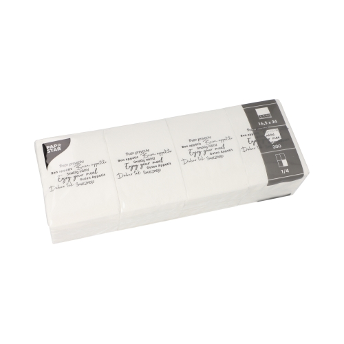 300 Snackservietten `DAILY Collection` 1/4-Falz 24 cm x 16,5 cm weiss `Enjoy your Meal`