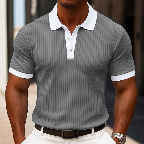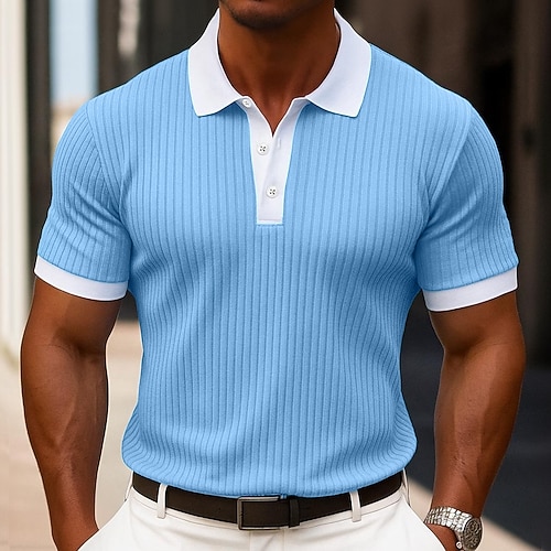 Per uomo Testurizzato Canotta Muscolare Lavoro Casuale Colletto Polo a Coste Classico Manica Corta Essenziale Moderno Blocco di colori A coste Estate Primavera Primavera Estate Vestibilità aderente