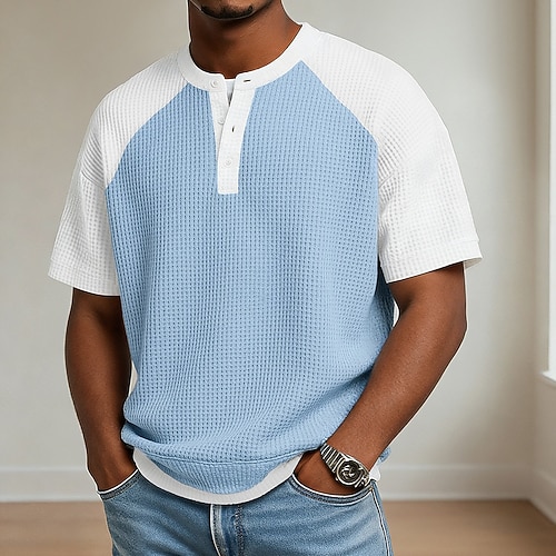 Da uomo Maglietta Waffle Maglietta Manica Corta Henley Estate Primavera Primavera Estate Tinta unica Testurizzato Moda Designer Casual Blocco di colore Lavorato a maglia Casuale Quotidiano