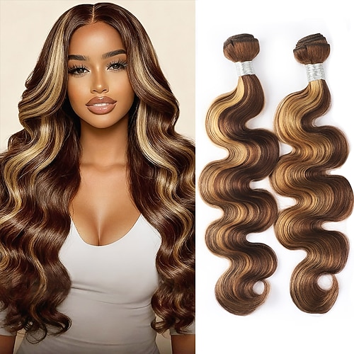 2 fasci di capelli intrecciati evidenziano p4/27 fasci di capelli umani onde del corpo fasci 12-28 pollici