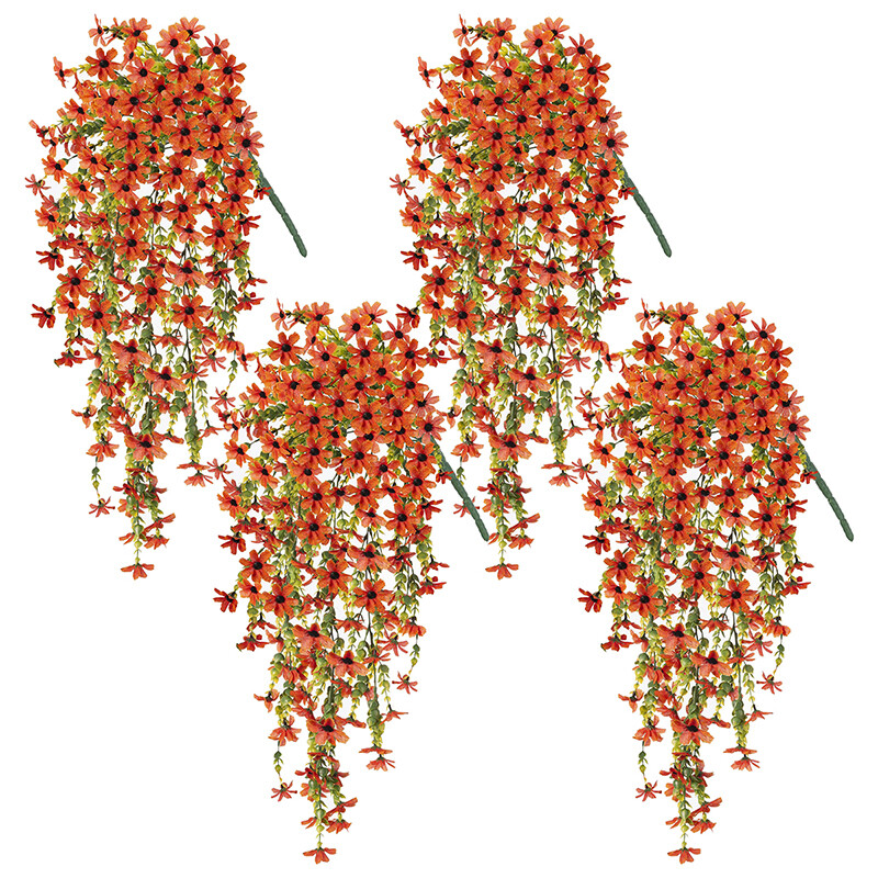 4Pcs 28.7in/72.8cm Artificial Hanging Flowers for Outdoors Fake Plants Decoration,Faux Silk Colorful Daisy Eucalyptus Realistic for Outside Home Planter Porch Patio Yard Decor(orange)