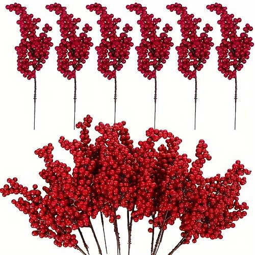 Set da 15 pezzi di steli di bacche artificiali rosse, bacche finte in plastica per decorazioni festive fai da te, adatte per alberi di Natale e San Valentino