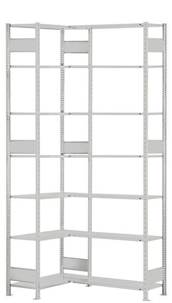 SCHULTE Lagertechnik Eckregal (Felder A + B) 3000 x 1000 x 500, 2x7 Fachböden, Längenriegel, RAL 7035 lichtgrau