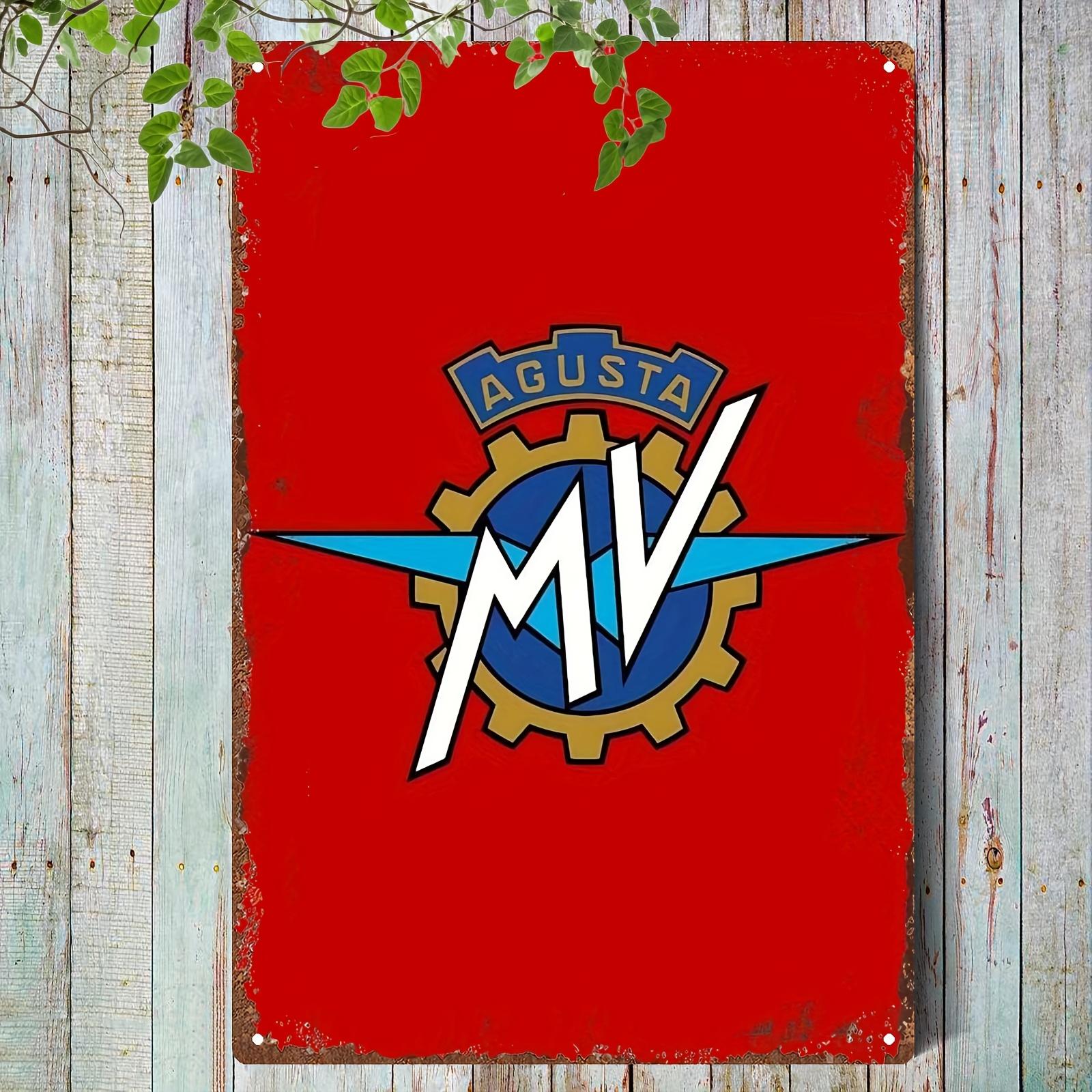 2D Vlak, 1 Retro Metalen Bord Plaat | Een Vintage MV Agusta Logo Blik Schilderij met Verweerd Vakmanschap, Geschikt voor Garage St