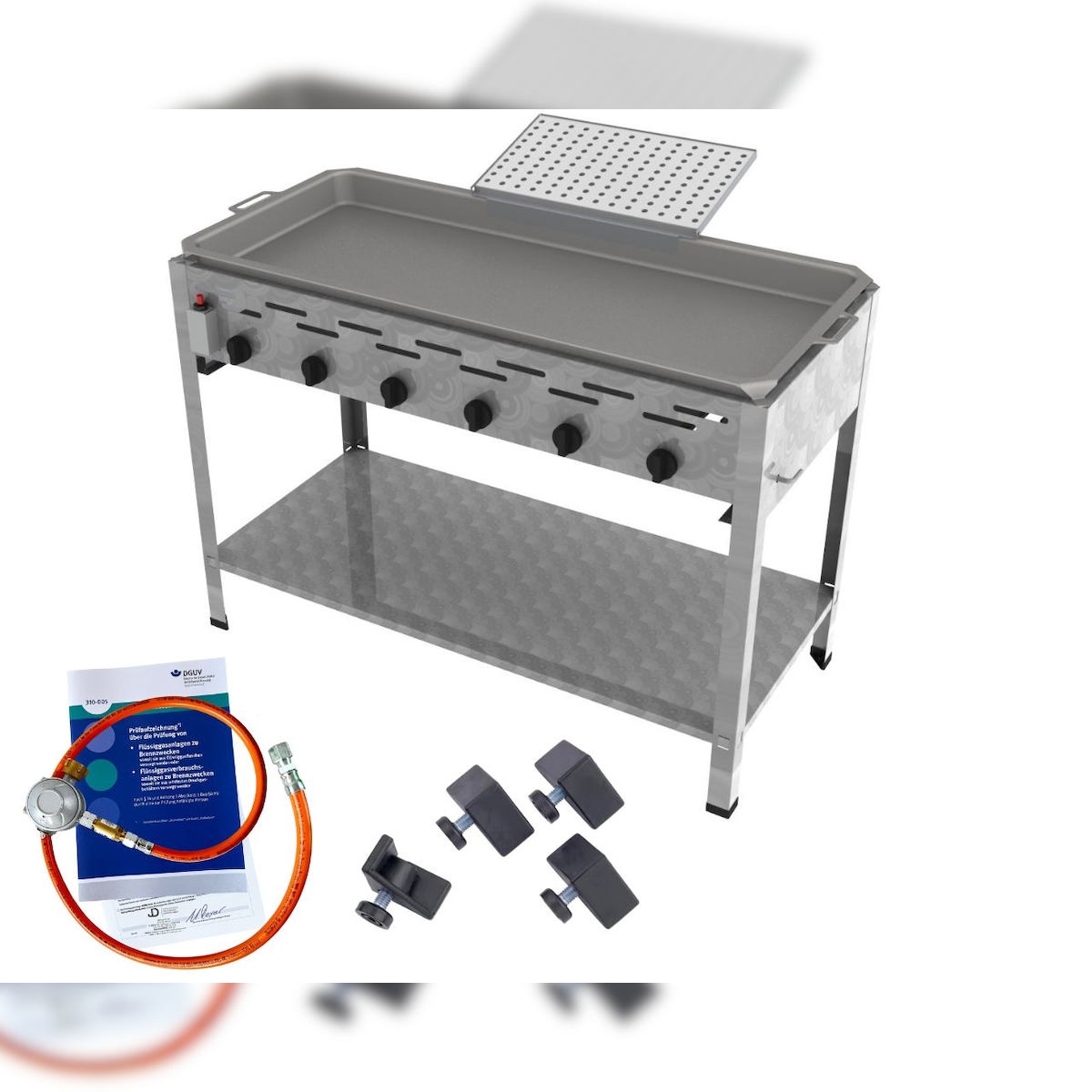 ChattenGlut Gasbräter 6-flammig 27kW Standgerät Stahlpfanne mit Reibekuchen Auflage mit DGUV