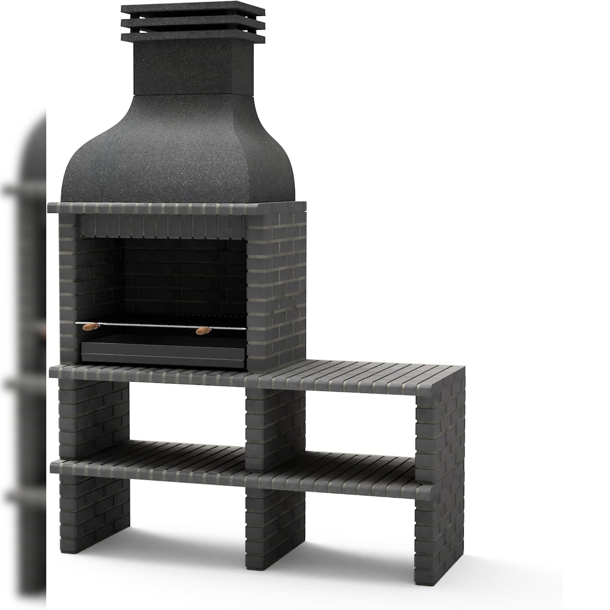 MAESTRO FERRETERO MF - Gartenkamin Benhaddou Plus mit Seitenablage & Grillrost (Dunkelgrau - 178x70x262 cm) REF: M01032 - Für den Außenbereich.