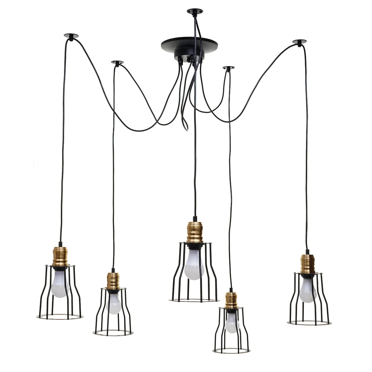 Mendler Pendelleuchte HWC-H81, Hängeleuchte Hängelampe, Industrial Metall höhenverstellbar schwarz ~ 5x Käfiglampenschirm