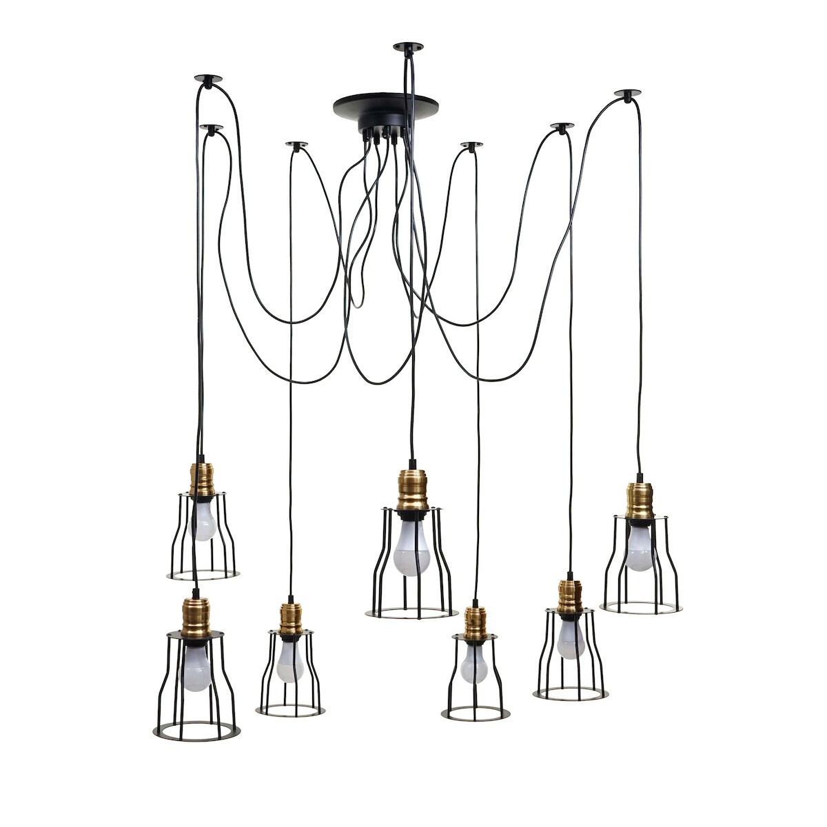 Mendler Pendelleuchte HWC-H81, Hängeleuchte Hängelampe, Industrial Metall höhenverstellbar schwarz ~ 7x Käfiglampenschirm