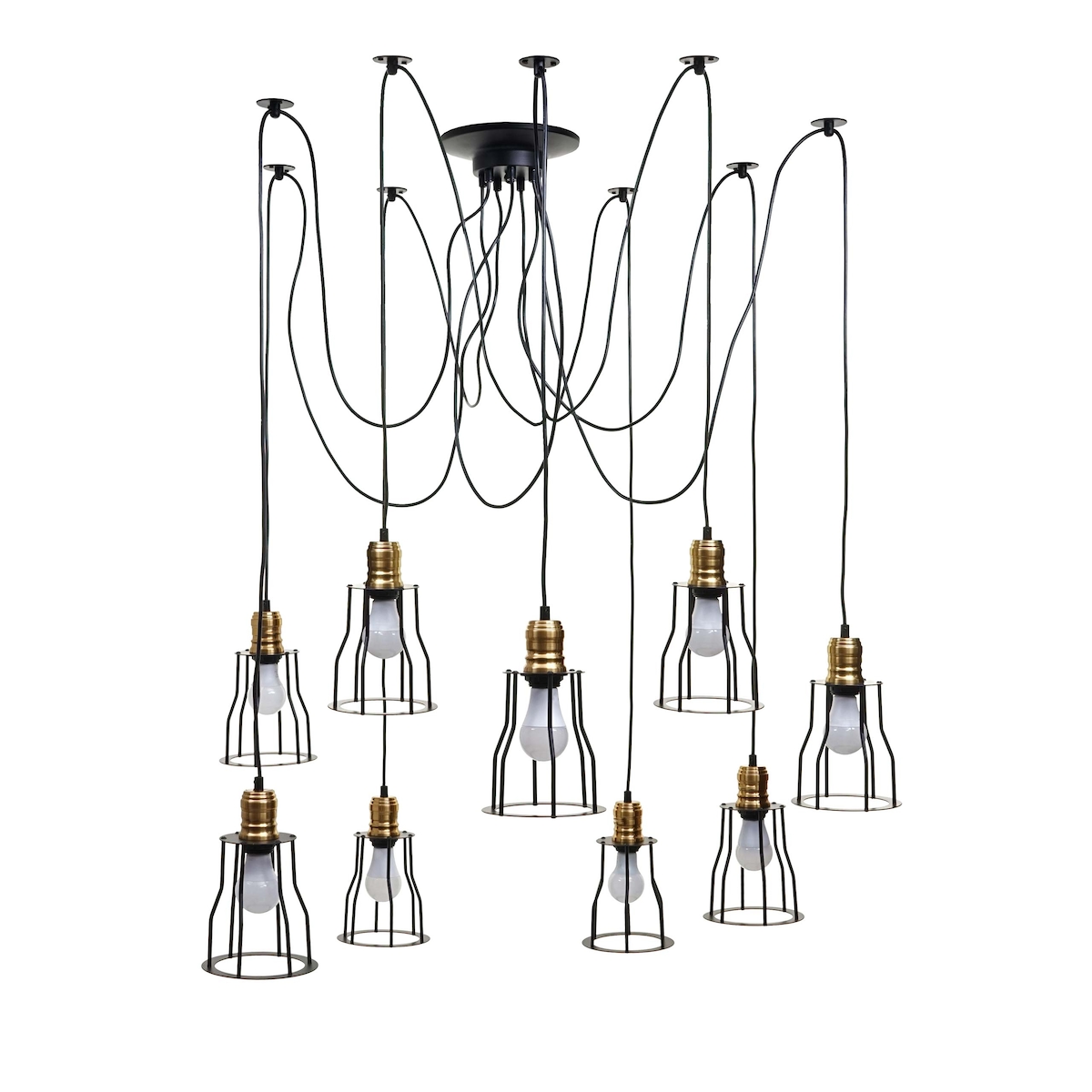Mendler Pendelleuchte HWC-H81, Hängeleuchte Hängelampe, Industrial Metall höhenverstellbar schwarz ~ 9x Käfiglampenschirm