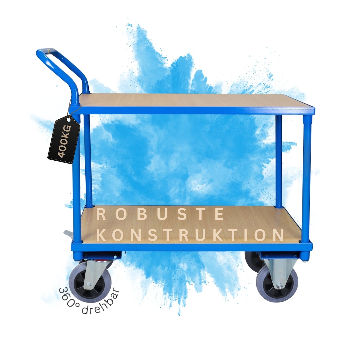 PROREGAL Tischwagen Pro mit 2 Etagen | HxBxT 95x50x97cm | Traglast 400kg | Lichtblau | Transportwagen Handwagen Materialwagen