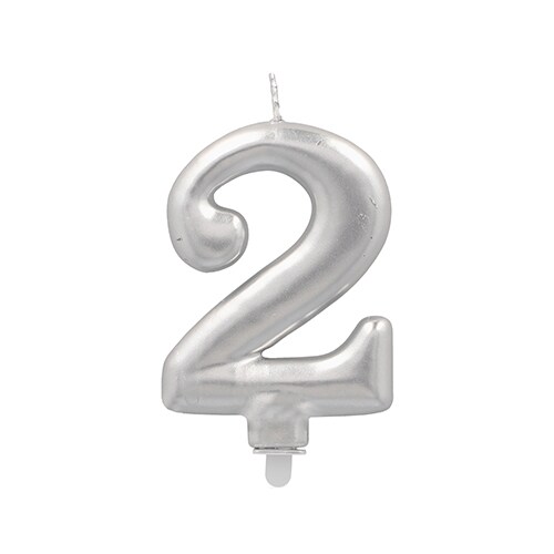 Papstar 12 Zahlenkerzen mit Halter 7 cm silber `2`
