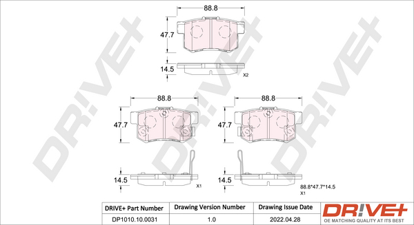 Drive+ Bremsbelagsatz, Scheibenbremse vorne rechts links für MG NISSAN HONDA 45022S1AE02 SFP000370 410604U127 DP1010.10.1119