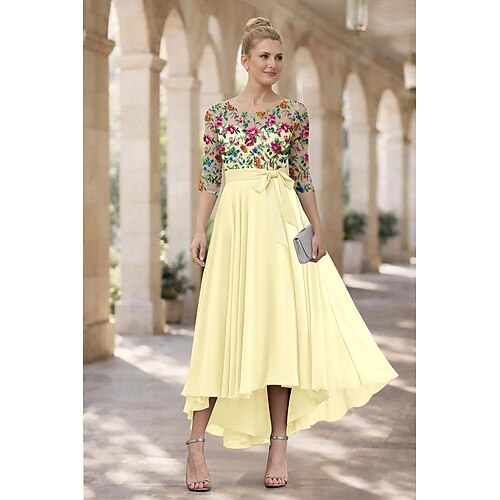 Linea ad A Abito Abito alto-basso Lunghezza alla caviglia Abito da Cocktail Abito da invitata a nozze Abito da cerimonia per signora Mezza Manica Scollo Tondo Elegante Casual Alto Basso Formale