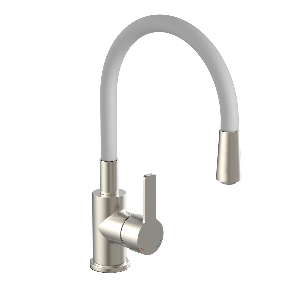 Küchenarmatur FLEXO, biegsamer Wasserhahn Küche, wassersparende Mischbatterie Küche in Edelstahloptik/Grau