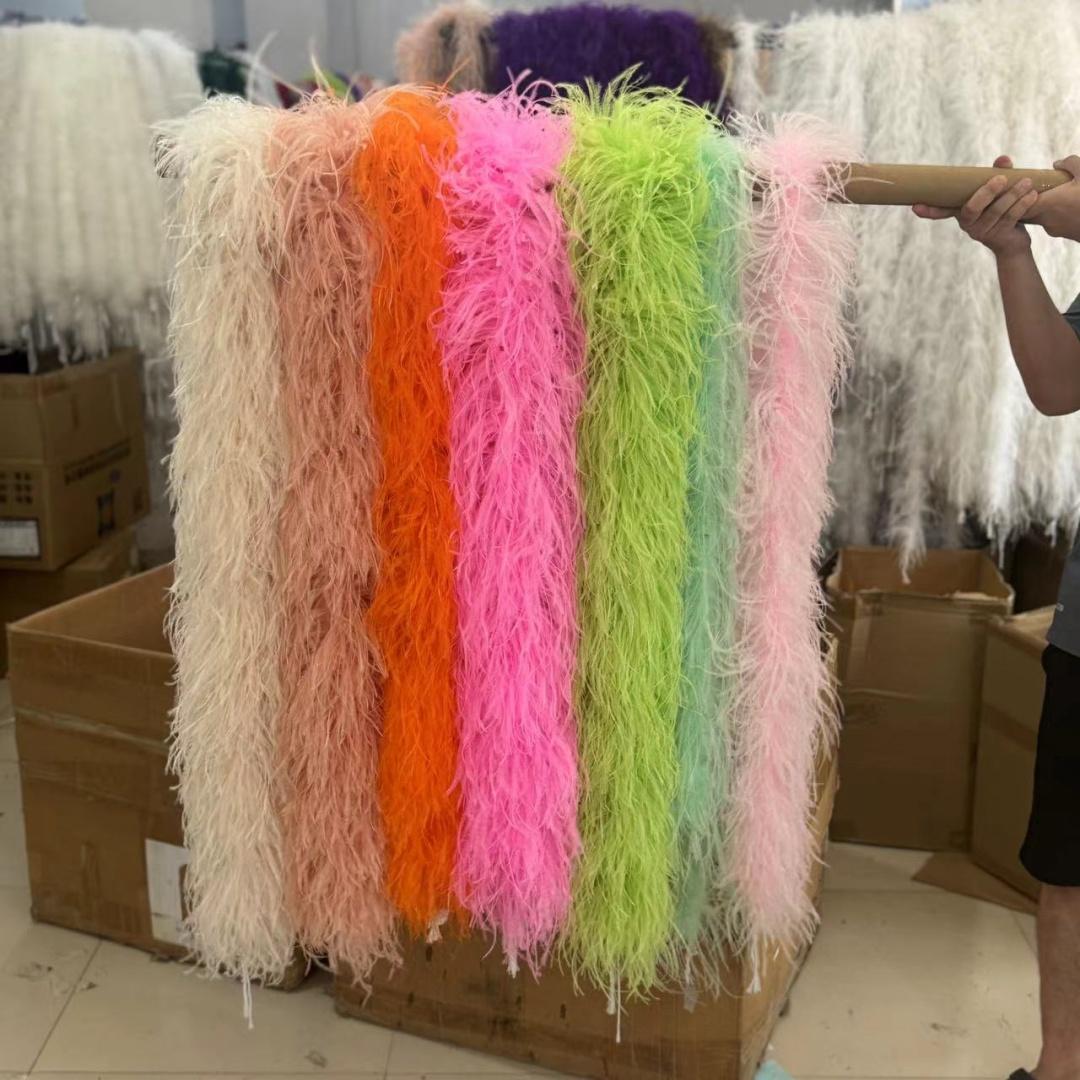 2 Meter Naturlige Strussefjær Boa Sjal 2-8 lag Myke Fjær Pynt Skjerf for Bryllup Karneval Klær Søm Fjær Tilbehør lys rosa farge