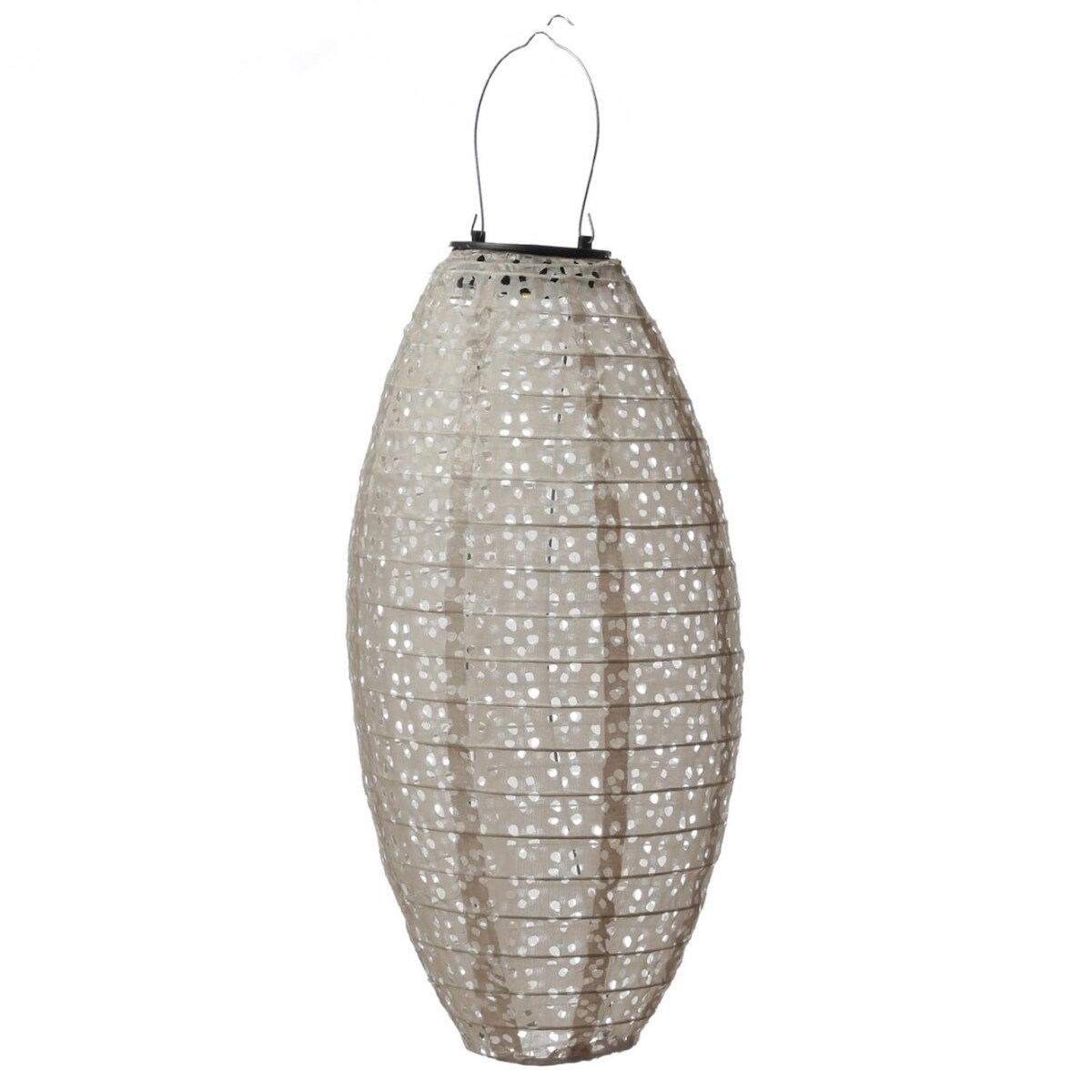 MARELIDA LED Solar Lampions oval Blumenmuster beige 40cm Balkon Terrasse 2St