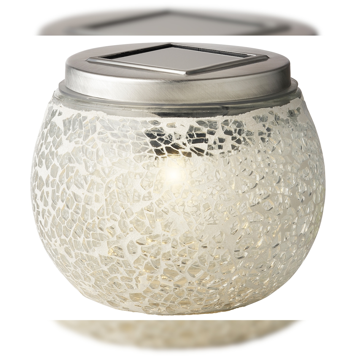 Lumineo Solargartenleuchte 9cm Tischleuchte LED Solarleuchte Solarlampen Außenleuchte Mosaik Solar Gartenleuchte Garten Balkon Außen Glas Gartendeko Warmweiß