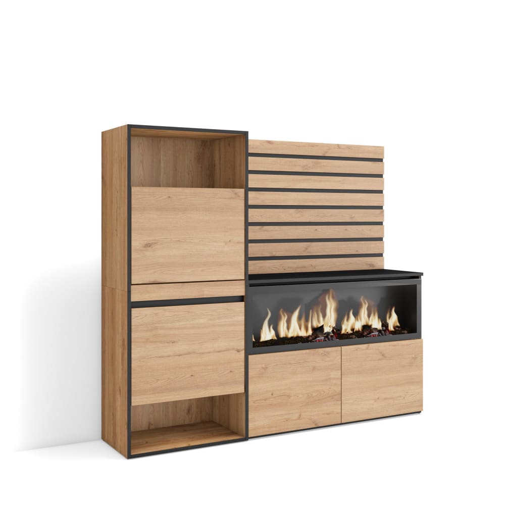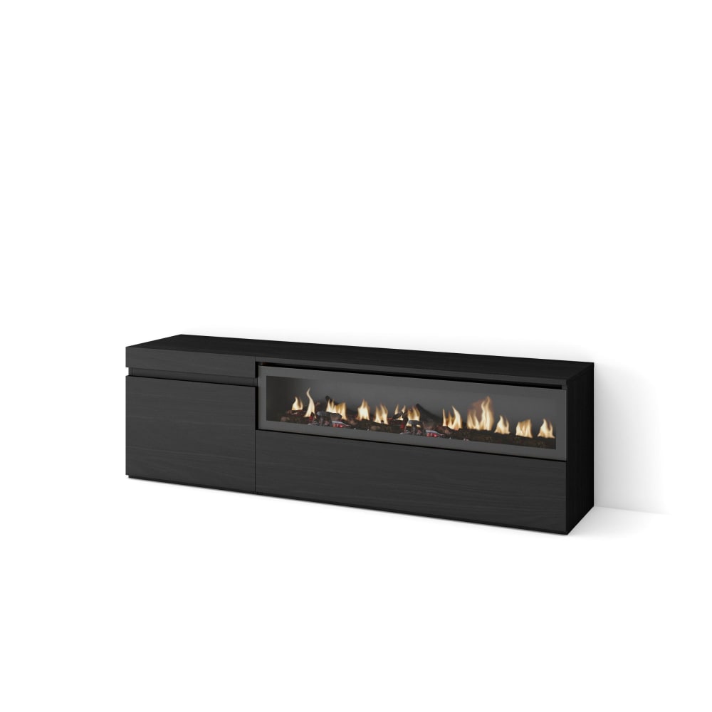 Credenza effetto legno rovere e nero camino effetto fiamma 150x35x87cm
