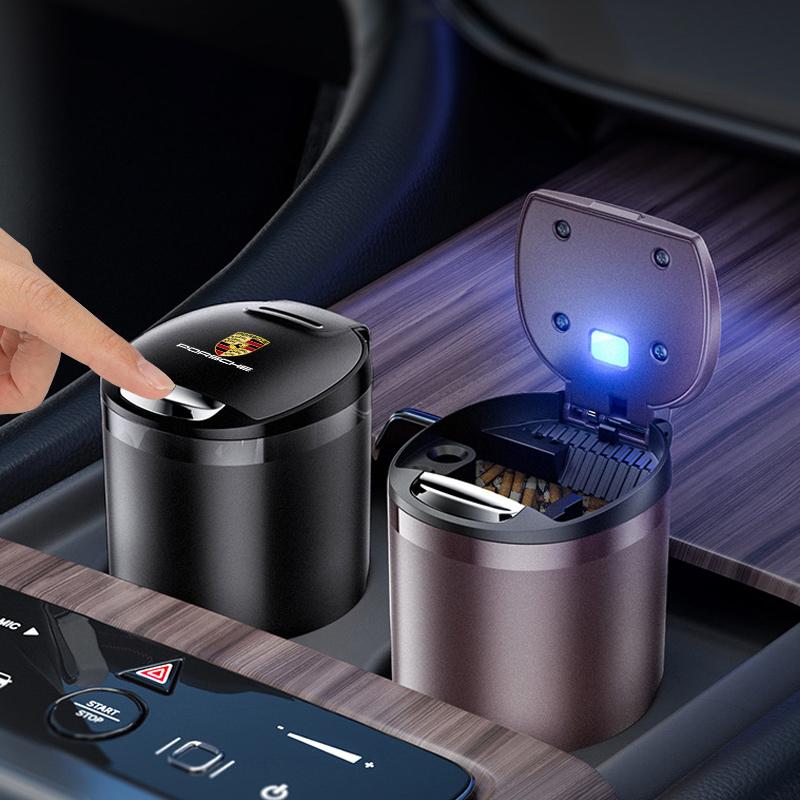Cendrier avec Logo de Voiture Boîte à Ordures Portable Support de Rangement Accessoire Pour Porsche 911 Cayenne Carrera-GT 928 Panamera Boxster Macan