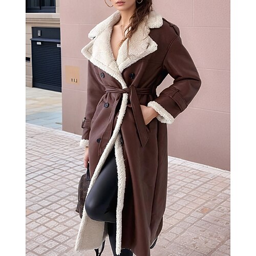 Per donna Cappotto Invernale Cappotto Caldo Confortevole Tasca Attivo Blocco di colori All'aperto Uscire Weekend Lungo Collo ripiegato Vestibilità regolare Manica Lunga Capispalla Nero Caffè Autunno