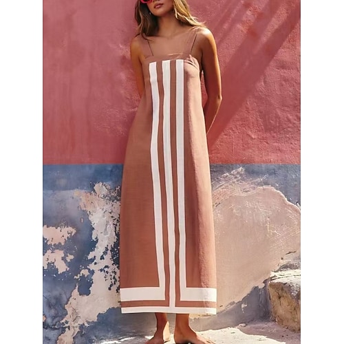 Per donna Abito maxi Abito a Tubino Abito Sottoveste Vacanza Casual All'aperto Uscire Vestibilità comoda A righe Senza Maniche Collo quadrato Blu Nero Rosso Caffè Estate