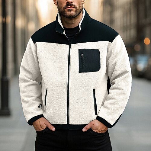Per uomo Maglia Felpa in pile Felpa con zip intera Bianco Verde militare Colletto Mao Blocco di colori Patchwork Cerniera Sport Outdoor Quotidiano Ferie Poliestere Streetwear Essenziale Casual