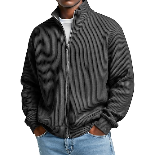 Per uomo Cardigan Maglione Maglione lavorato a maglia Cavi Maglia Standard Zip intera Tinta unica Colletto Di tendenza Classico Da tutti i giorni Appuntamento Abbigliamento Autunno inverno Blu marino