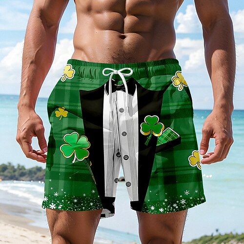 Costume con trifoglio del giorno di San Patrizio per uomini pantaloni da bagno con collo finto e design giacca pantaloni da surf pantaloni da nuoto vita media moda casual festa vacanza tasche