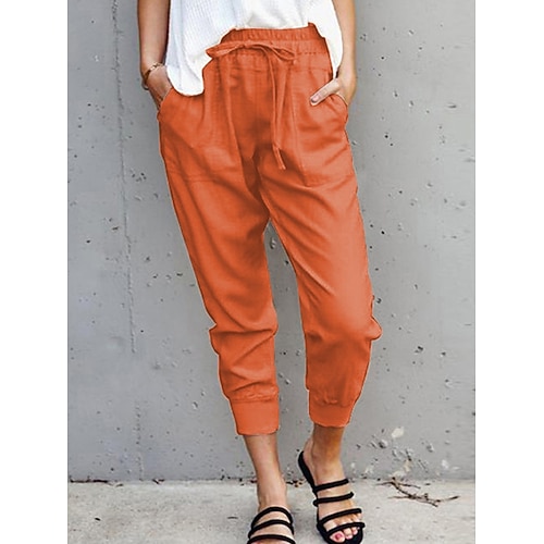 Pantaloni Baggy da Donna in Lino Similare Chinos Moda Streetwear Alla Caviglia Vita Media Grafica Tasche Comode Morbidi Confortevoli Micro-elastico Esterno Street Magenta Blu Notte Verde Chiaro