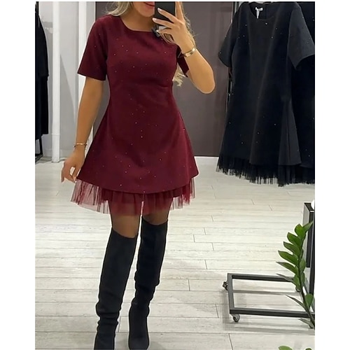 Per donna Mini Abito Abito nero Abito Elegante Elegante Moda Classico Quotidiano All'aperto Uscire Vestibilità regolare Semplice Manica Corta Collo quadrato Nero Rosso Marrone Estate Primavera