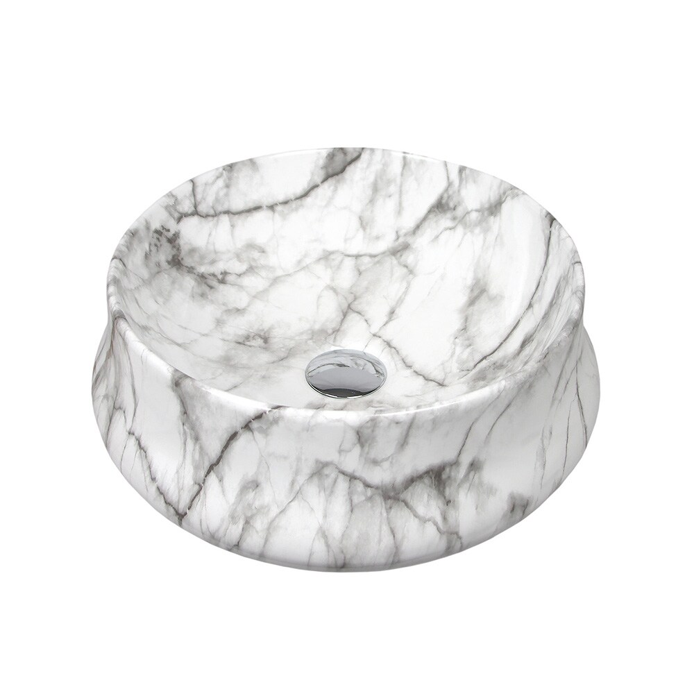 T-MAX Keramik Waschbecken weiß Marmoroptik rund 400 x 400 x 140 mm