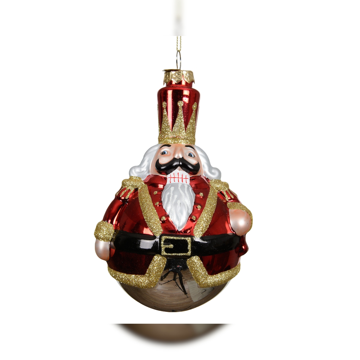 Christbaumschmuck Glas 15cm Nussknacker Figur zum Aufhängen - Weihnachtsbaum Anhänger Weihnachten Weihnachtsbaumschmuck Husar Soldat Rot Gold