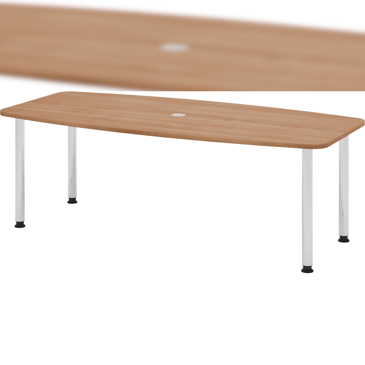 bümö Konferenztisch oval 220x103 cm großer Besprechungstisch in Nuss, Besprechungstisch mit Chromfüßen, Meetingtisch für 8 Personen, XXL-Tisch für
