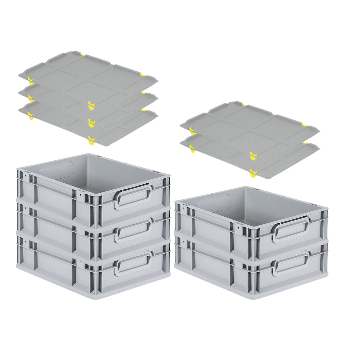 PROREGAL SparSet 5x Eurobox NextGen Economy mit Auflagedeckel & 4x Verschlüsse Grün, Griffe offen, HxBxT 12x40x60cm, 23L, Eurobehälter, Box