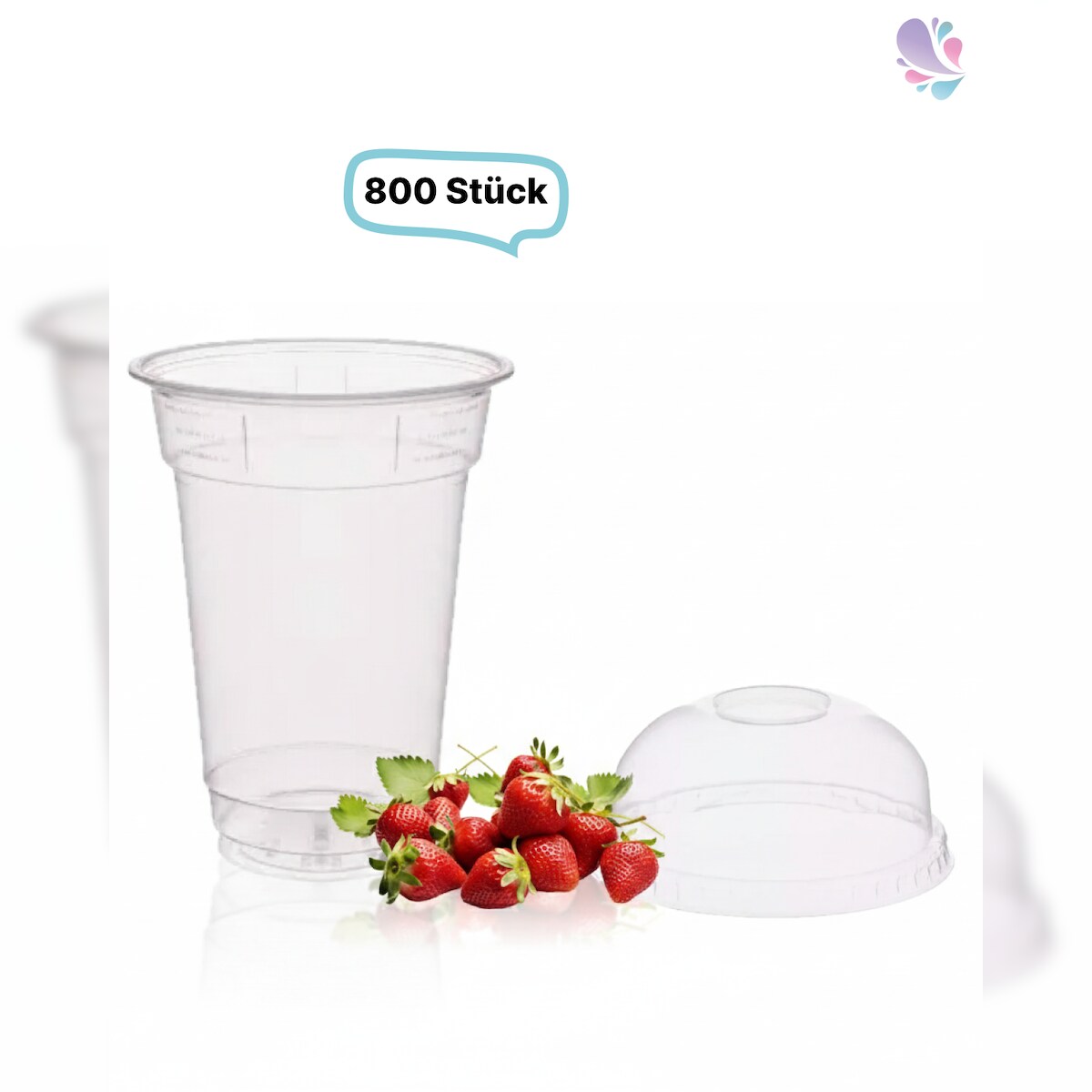 Blanc HYGIENIC SET: Cups, klare Becher 300ml + Deckel ohne Loch - 800 Stück, transparentes recyceltes PET
